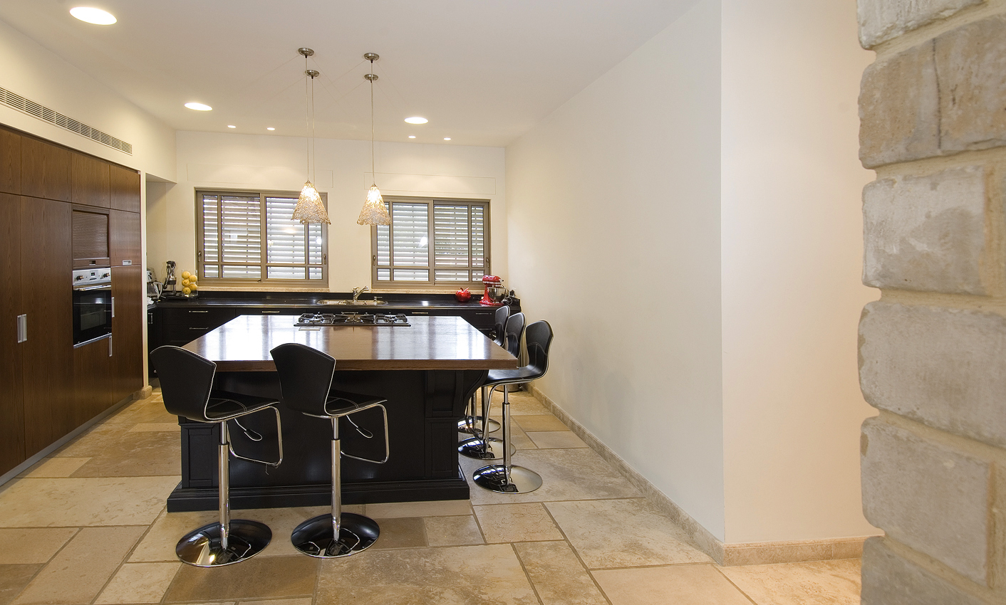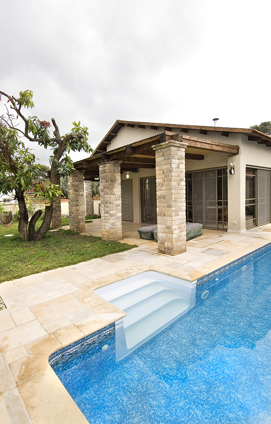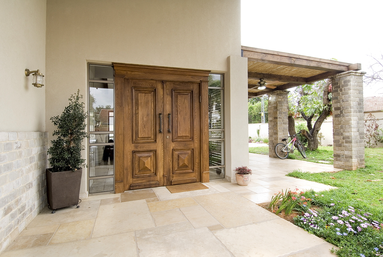 דגש על חזית אחידה, קשר פנים חוץ ע”י זכוכית וחצר פנימית מוגנת ב-3 צדדים, מחוברת לחדר המשפחה ומכניסה אור לחלק הפנימי של הבית.